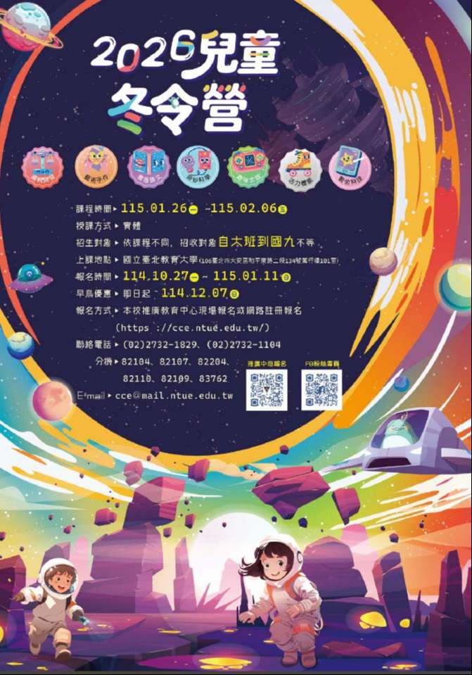 國立臺北教育大學校進修推廣處推廣教育中心辦理「2026冬令營」營隊簡章